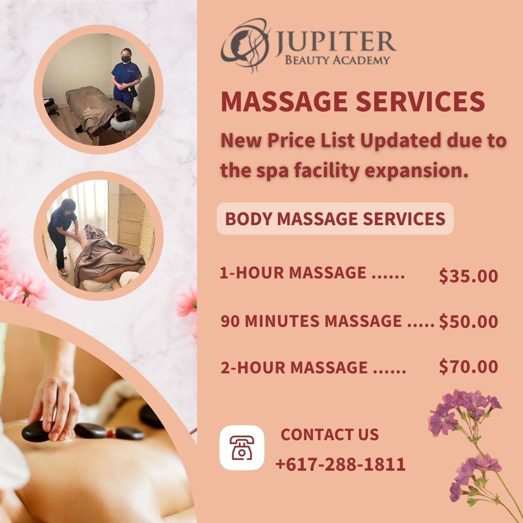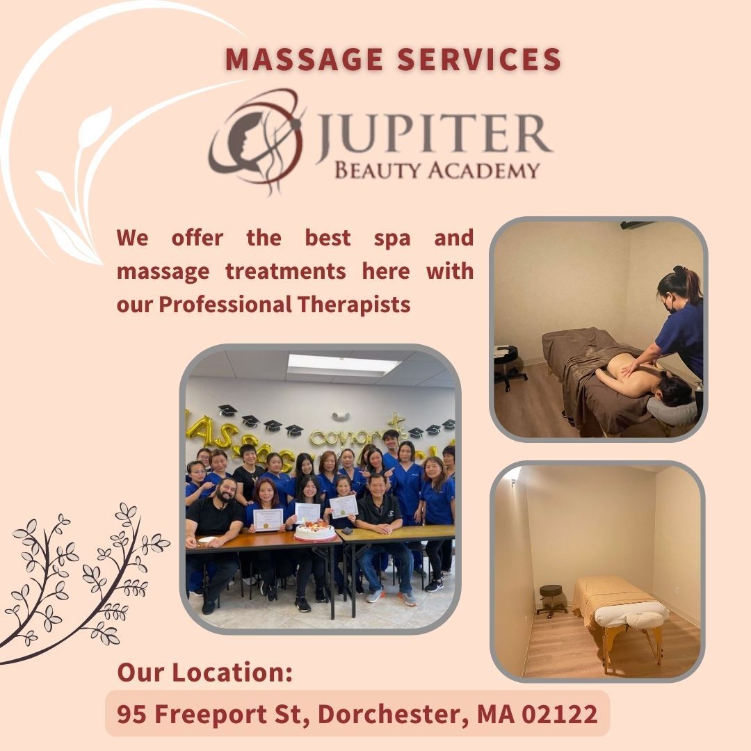 🔔 Our massage service is now available to book online. Just $35.00 for 1-hour massage with cozy and comfortable rooms that will give you the wonderful experiences 🥰 👉 Check out our massage schedule and book an appointment with us today through this link: https://www.fresha.com/a/jupiter-beauty-academy-boston-95-freeport-street-okuw5lep/booking?menu=true&pId=723138 #massage #jupiterbeautyacademy #spa #cosmetology #beautysalonButton